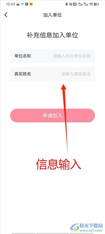 3、如果想加入所在单位的团队,可以通过搜索或输入口令加入,只需填写单位名称和姓名,提交申请即可;